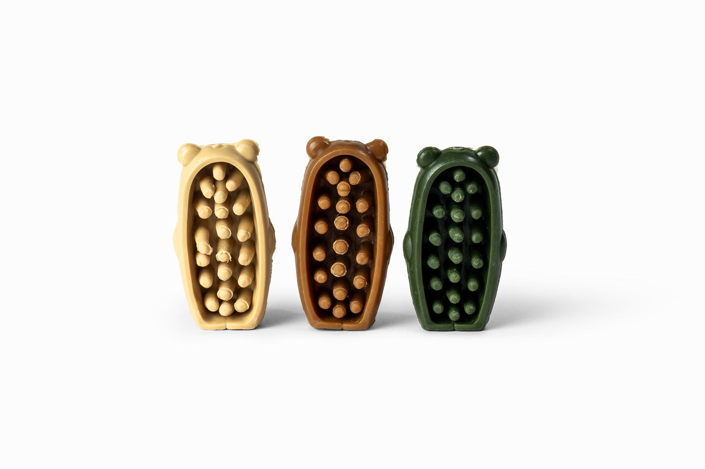 Trakteer je hond op een gezonde glimlach. Deze vrolijke Bijtbevers reinigen het gebit tijdens het kauwen en zijn volledig plantaardig. Een veilige snack voor elke hond!